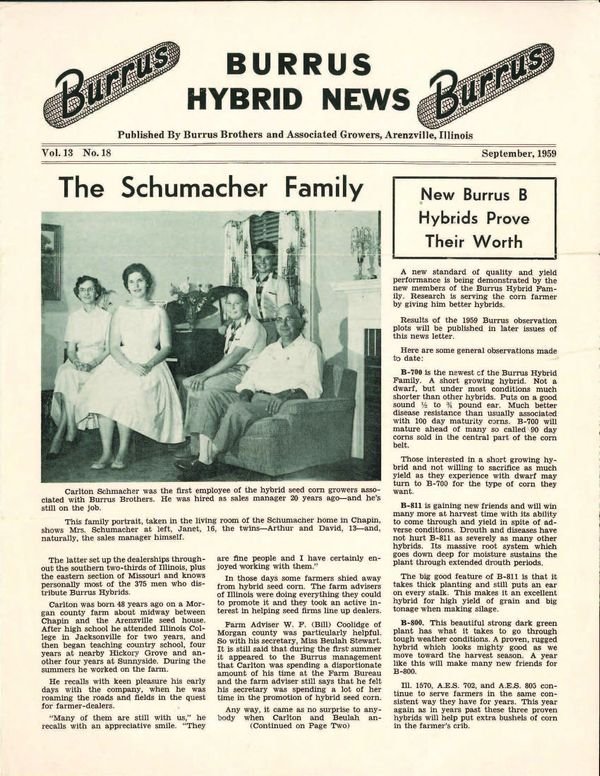 The history of Burrus highlights the events, people, and places that contributed to the growth and prosperity of a family seed corn business. From the first planting of hybrid seed corn in 1935, to the formation of the Associated Growers in 1939, to the launch of an interactive website in 2003 and every farming modernization in between, the Burrus history is the result of hard work and commitment of dedicated men and women. Burrus Hybrids has truly stood the test of time as a trusted partner in the farming industry.